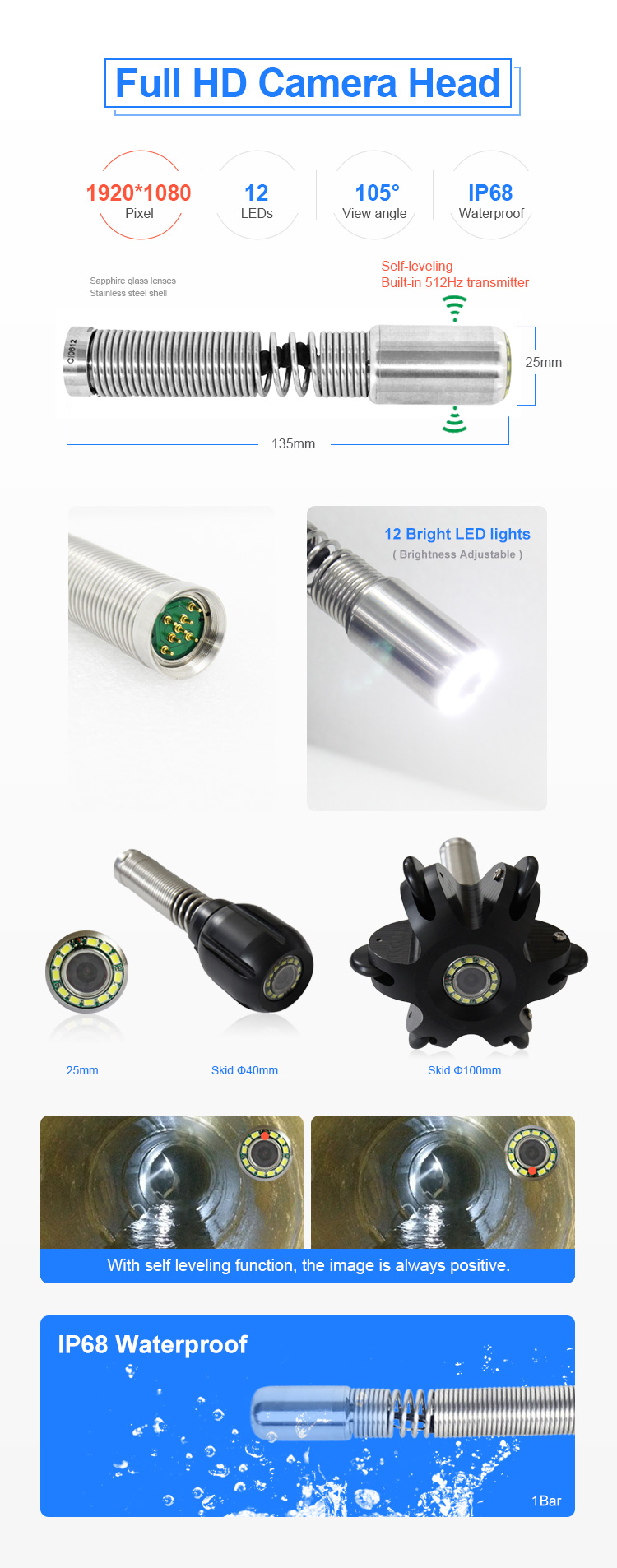 | Product Name | FH1 25mm IP68 waterproof Exclusive product with 1920*1080 resolution with self level camera built in 512HZ transmitter |